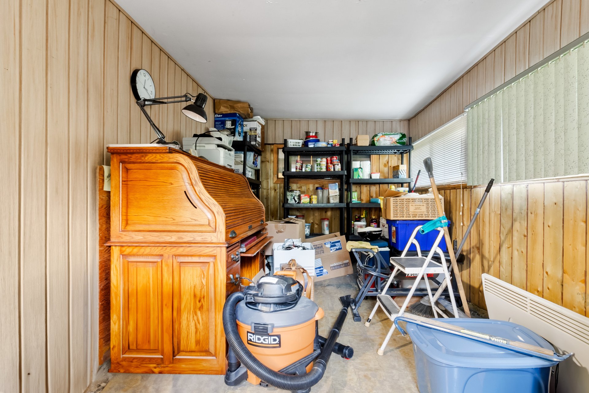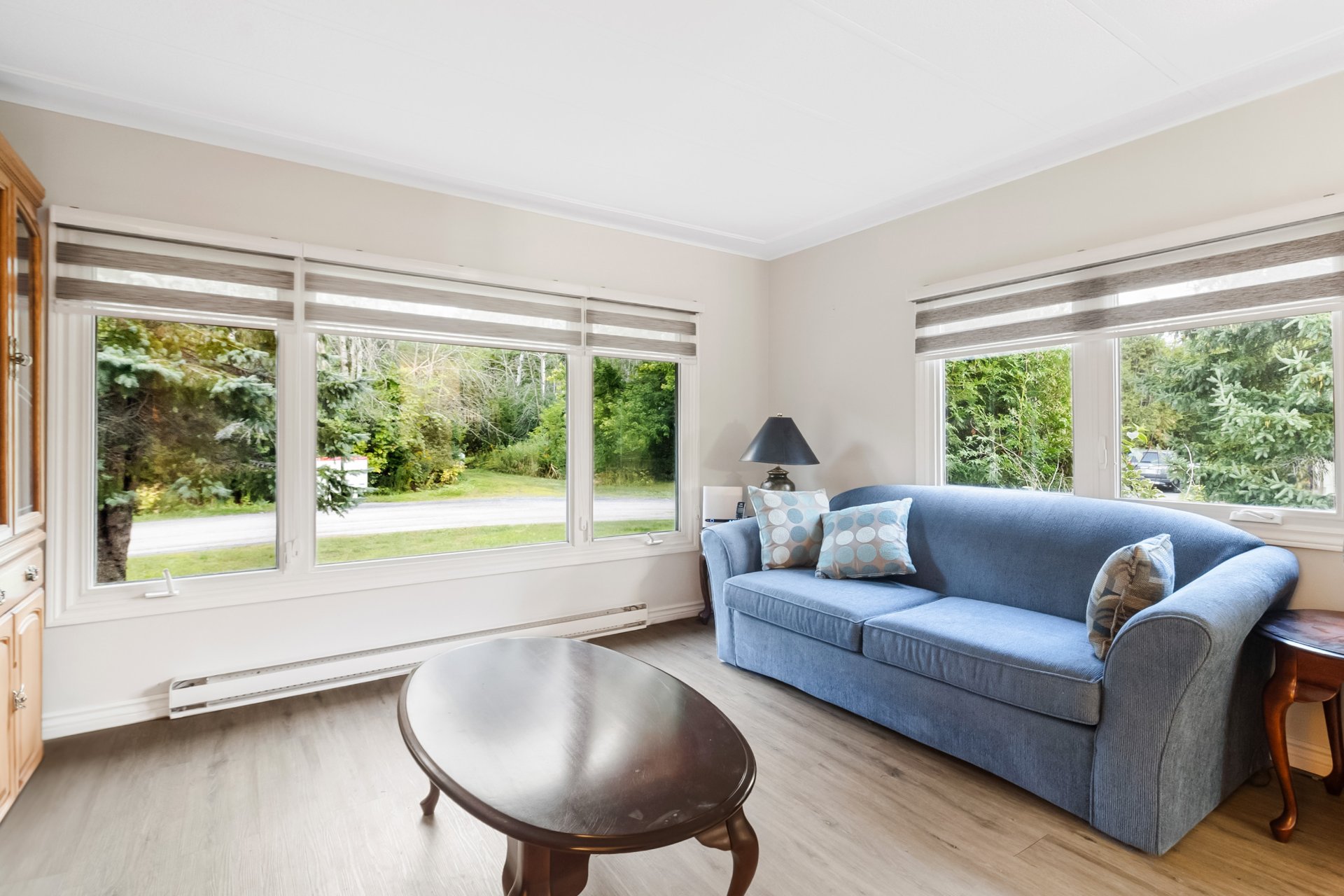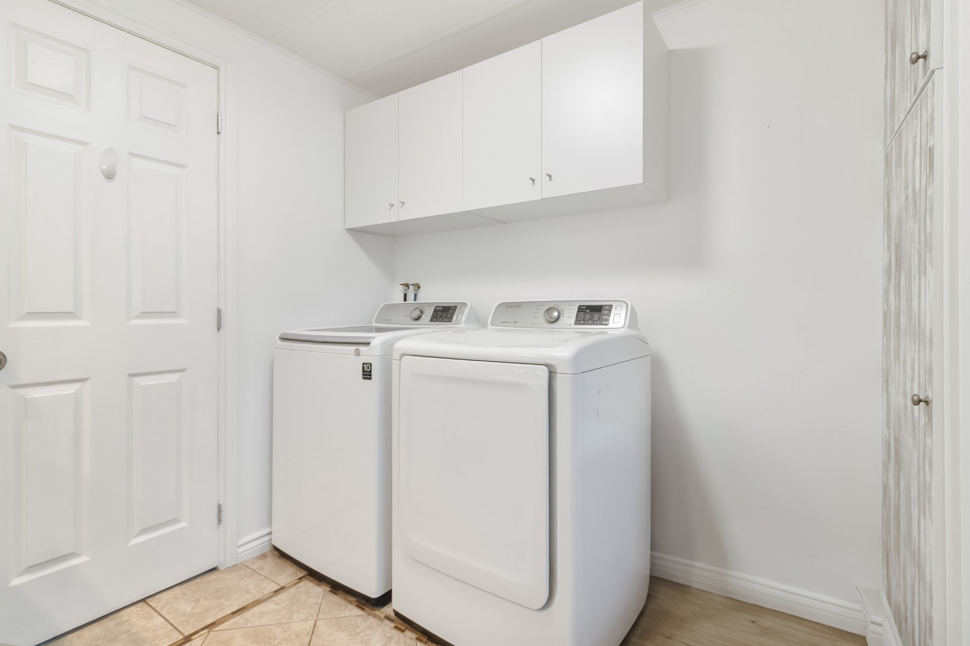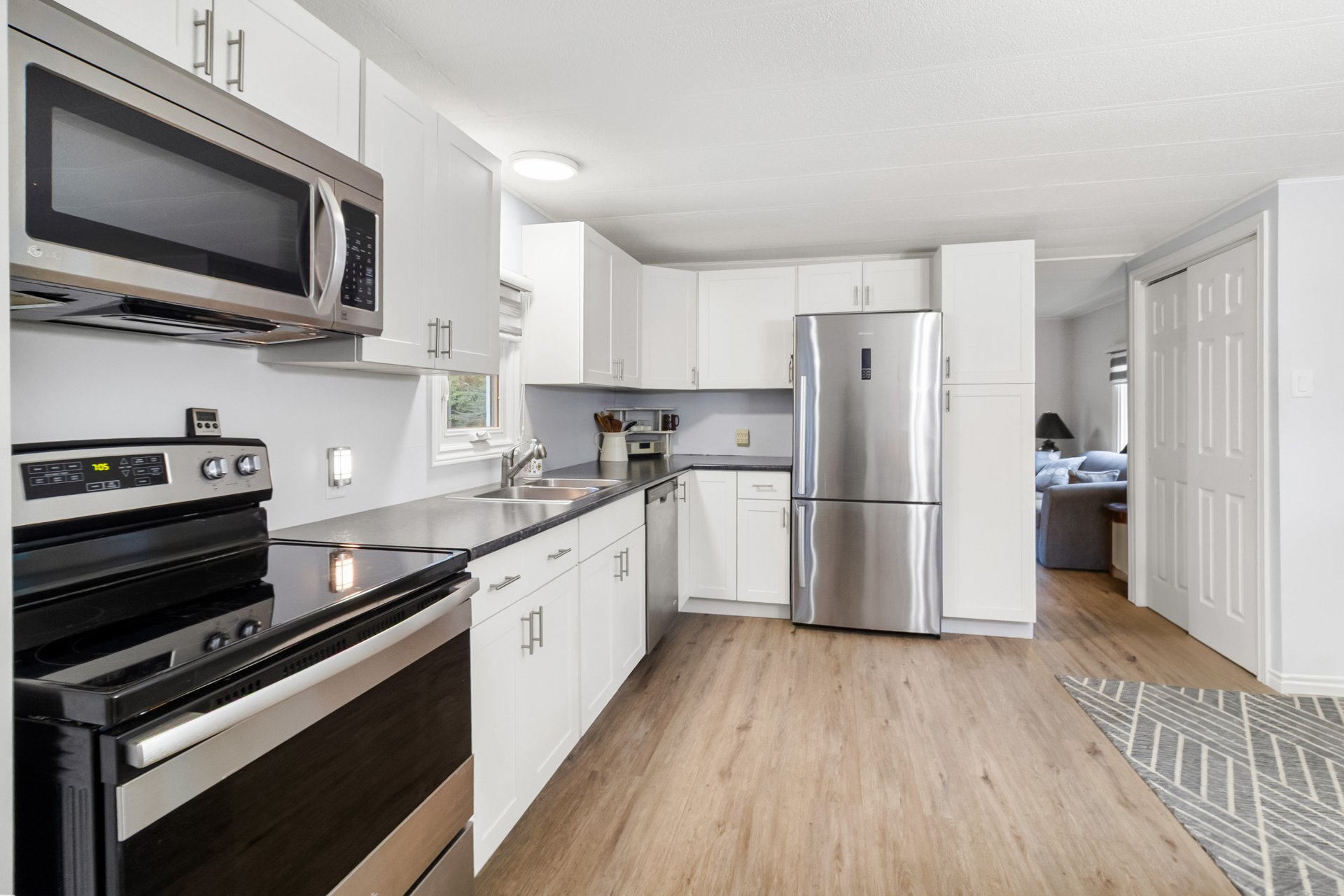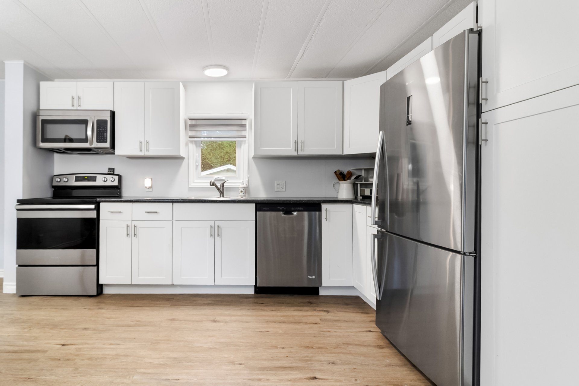Luminaires, tous les appareils électroménagers (lave-vaisselle, micro-ondes, réfrigérateur, cuisinière, laveuse, sécheuse), stores, air climatisé mural, 2 x cabanons